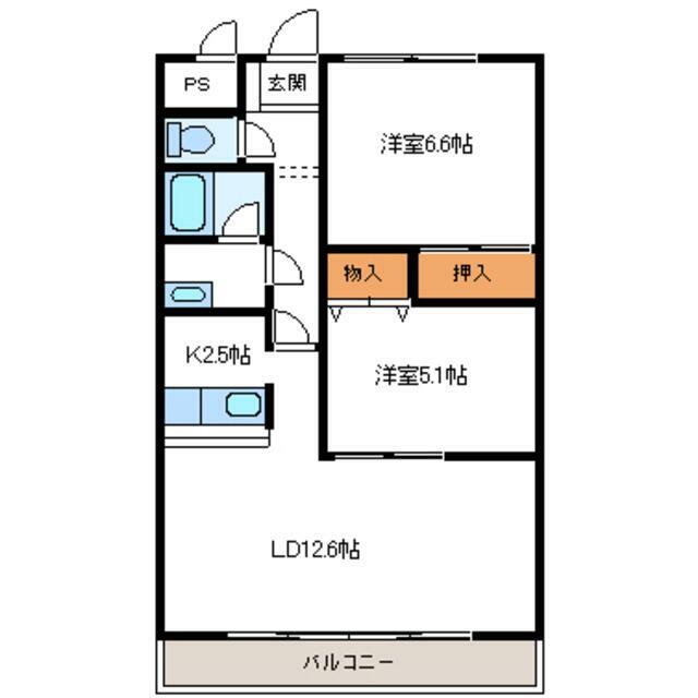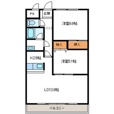 2LDK(LDK12.5洋室5.6洋室5.1) |